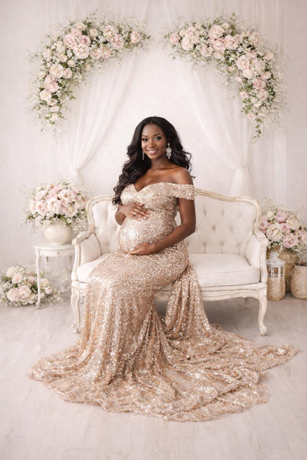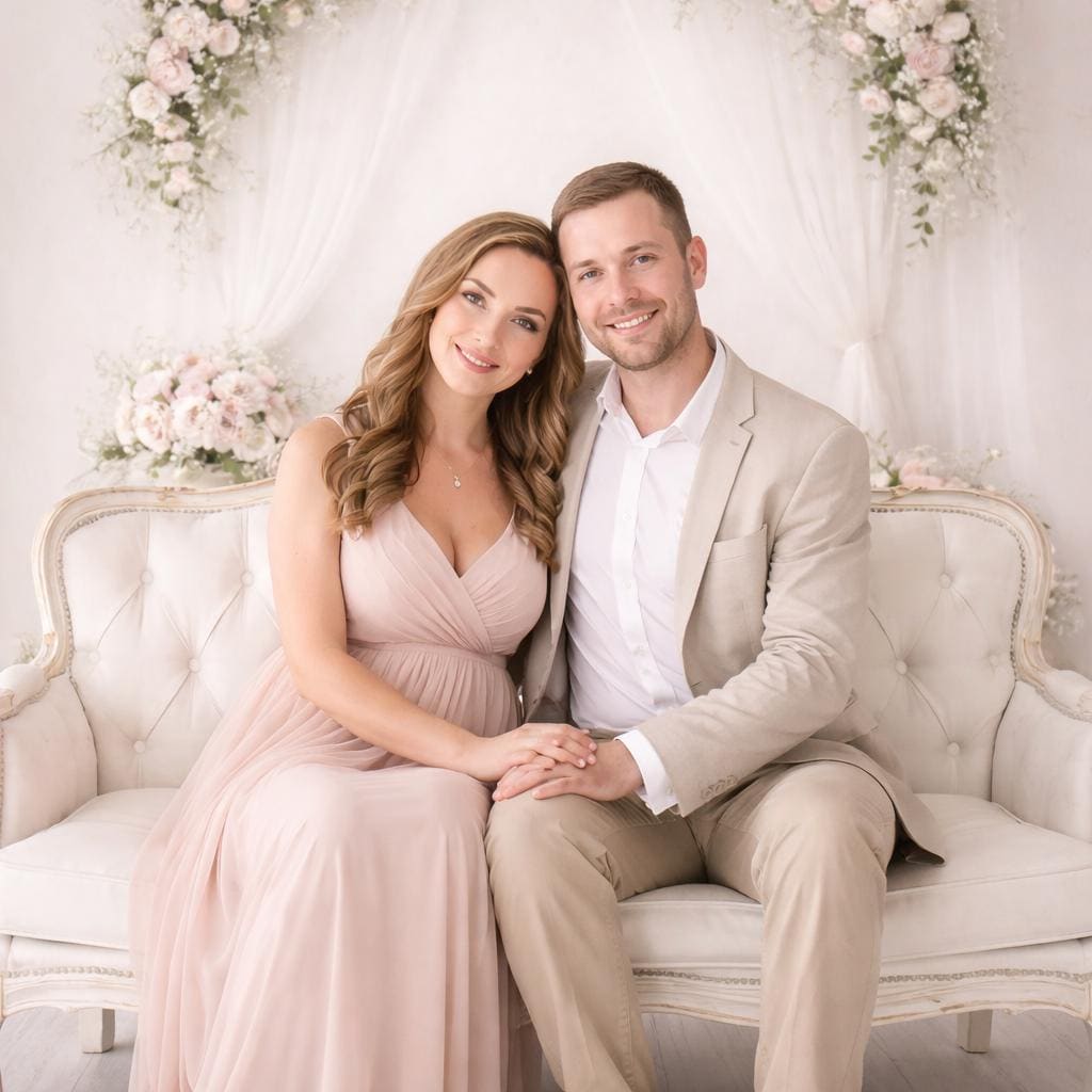 White Couch Floral Digital Backdrop, Family Portrait, Maternity Photography (Digital Download)