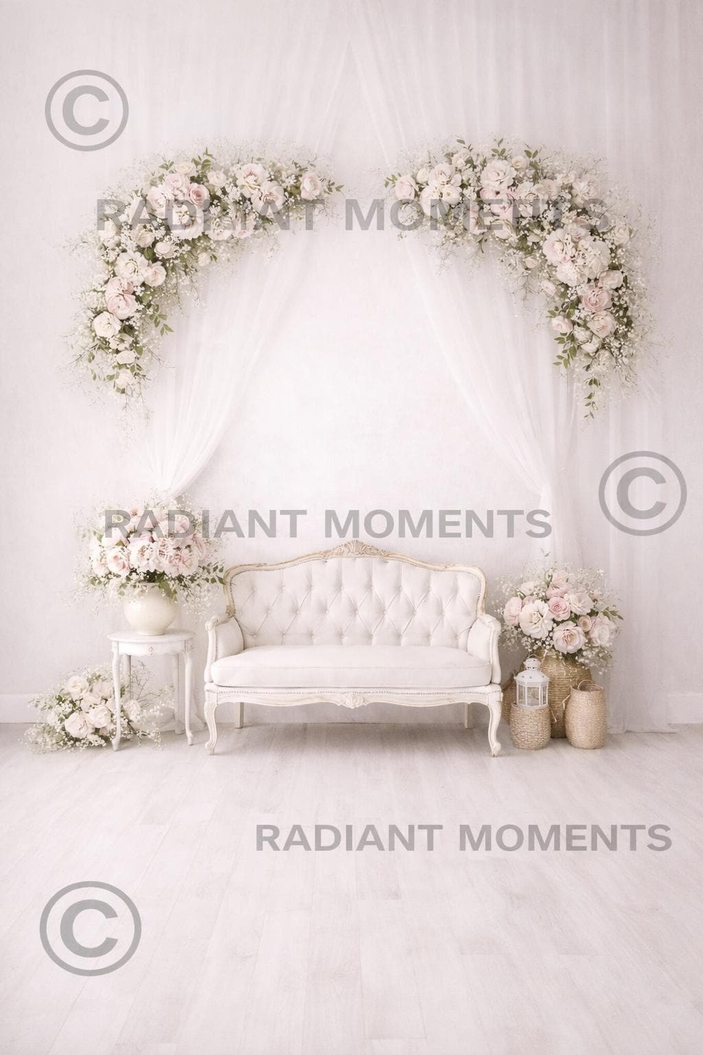 White Couch Digital Backdrop, Branches, White Flowers, White Studio, Family Portrait, Child, Maternity, Sofa, Studio,Digital Background