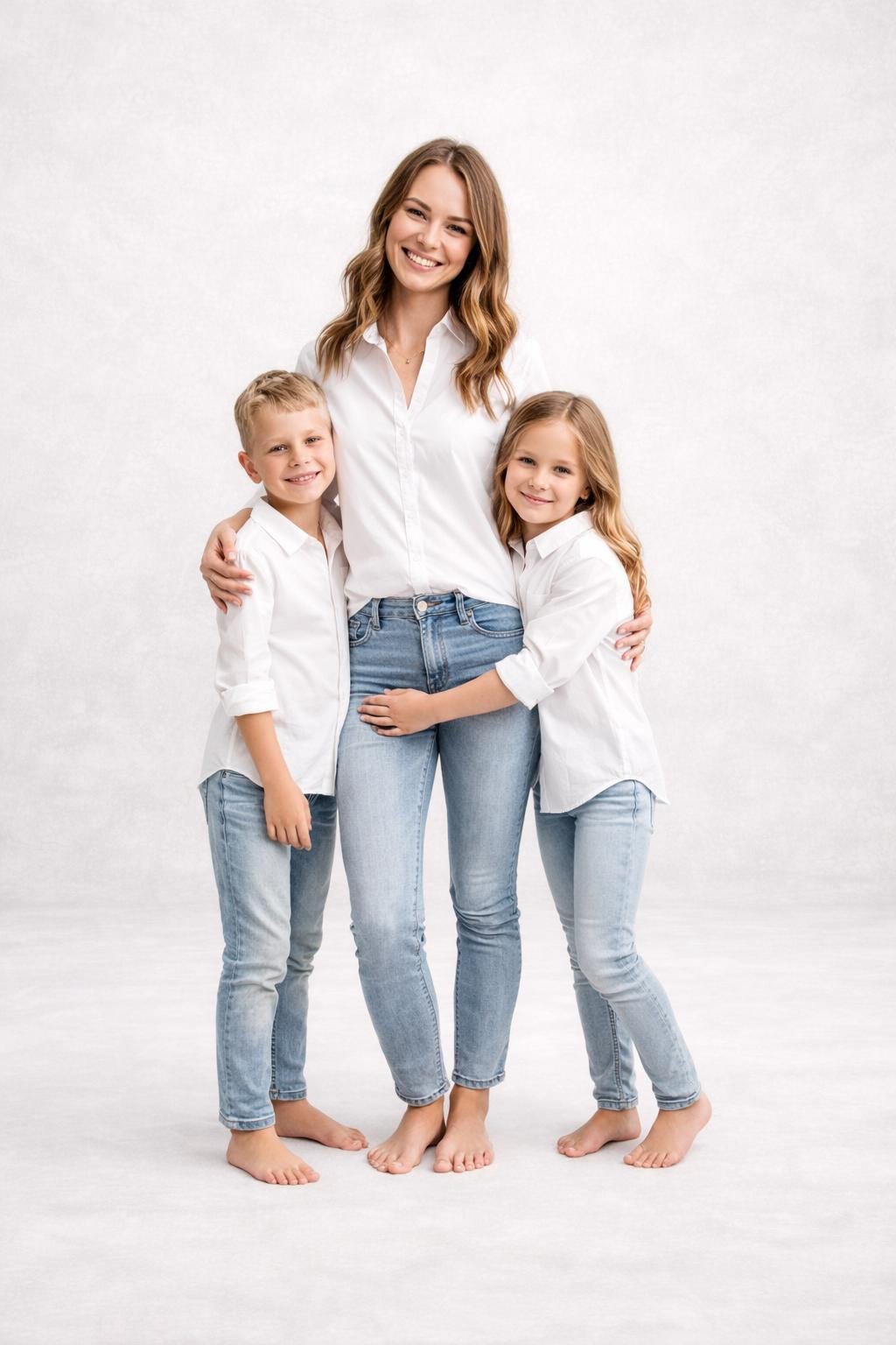 ✔ Soft Textured White Photography Backdrop – Perfect for light and airy maternity sessions, newborn portraits, and family photography